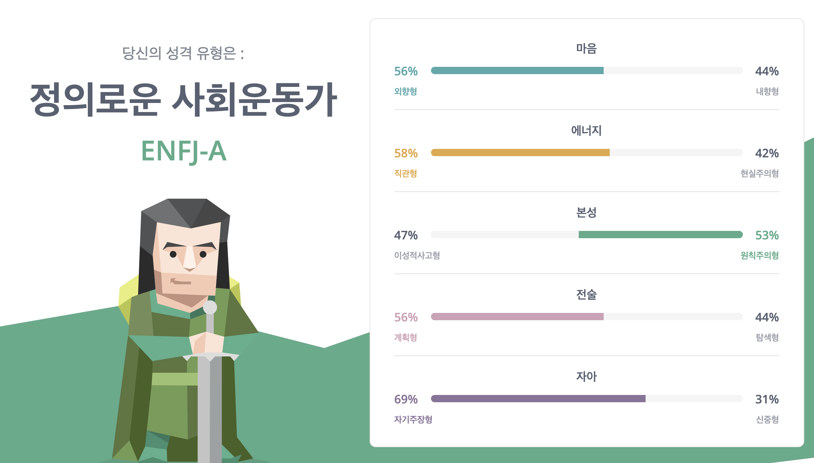 나 이외에 해본 회사 동기들의 검사결과를 봐도 대부분 잘맞는 것 같아 해당 사이트 공유겸 내 유형 기록용으로 남겨 본다.
