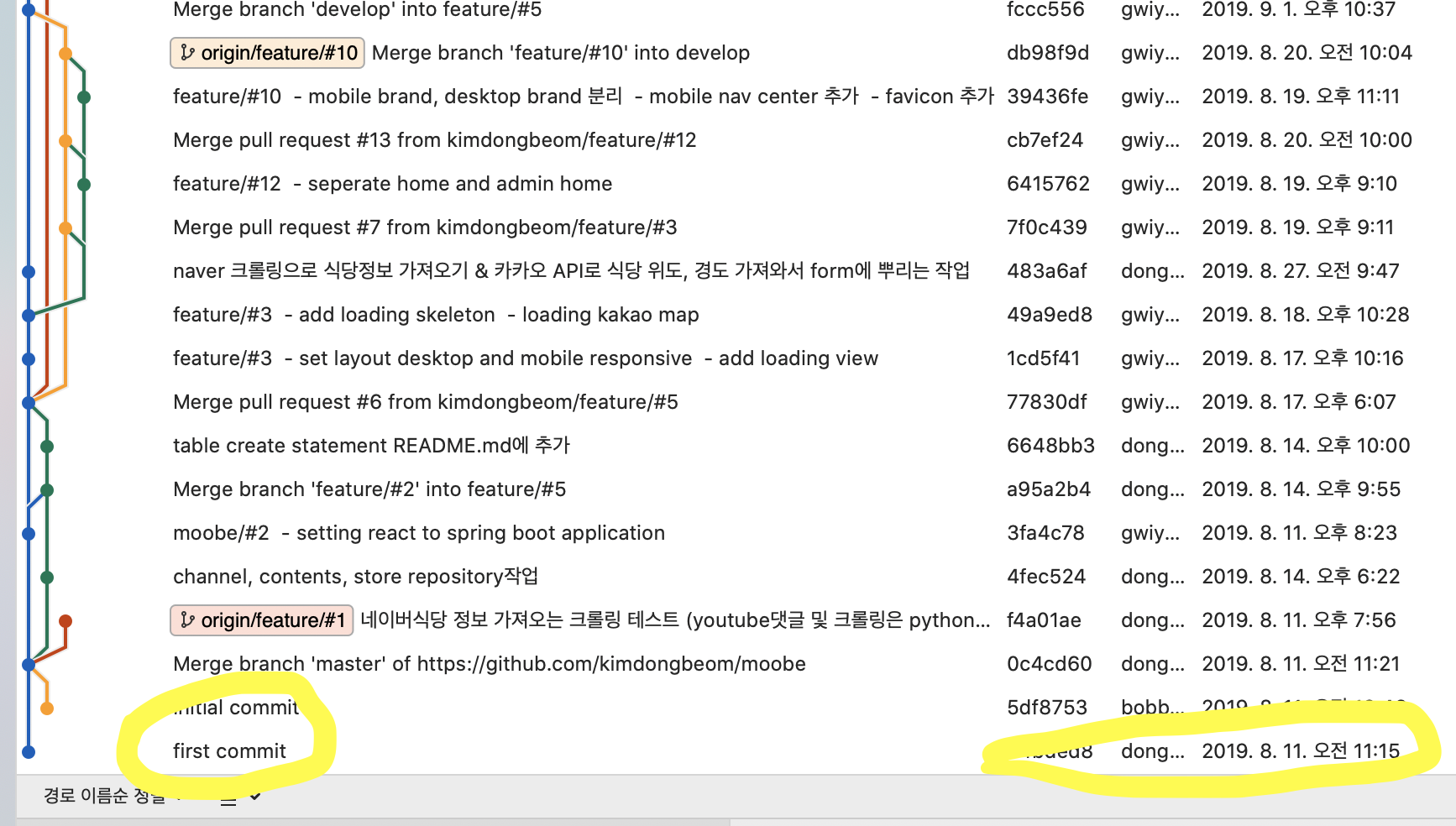 위에서 보시다 시피 첫 커밋은 8월 11일⭐️ 입니다. 시간 진짜 빠르다......