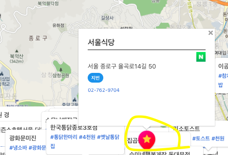 컨텐츠를 클릭해서 보면 동영상이 나오고 오른쪽 지도에는 해당 유튜브 컨텐츠 식당에 해당하는 위치가 지도에 표시되게 된다.