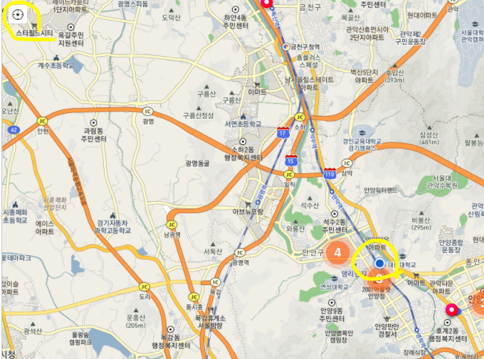 즐겨찾기한 컨텐츠는 지도에서는 다음과 같이 표기된다.