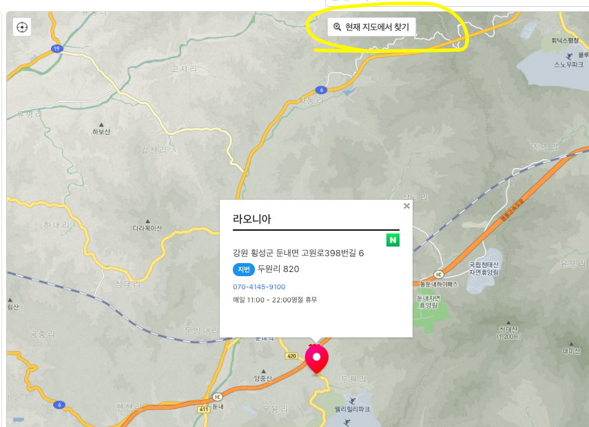 5. 검색기능을 제공, 현 지도에서 찾기 기능 제공 (음식점이름, 컨텐츠 제목, 태그)