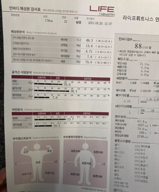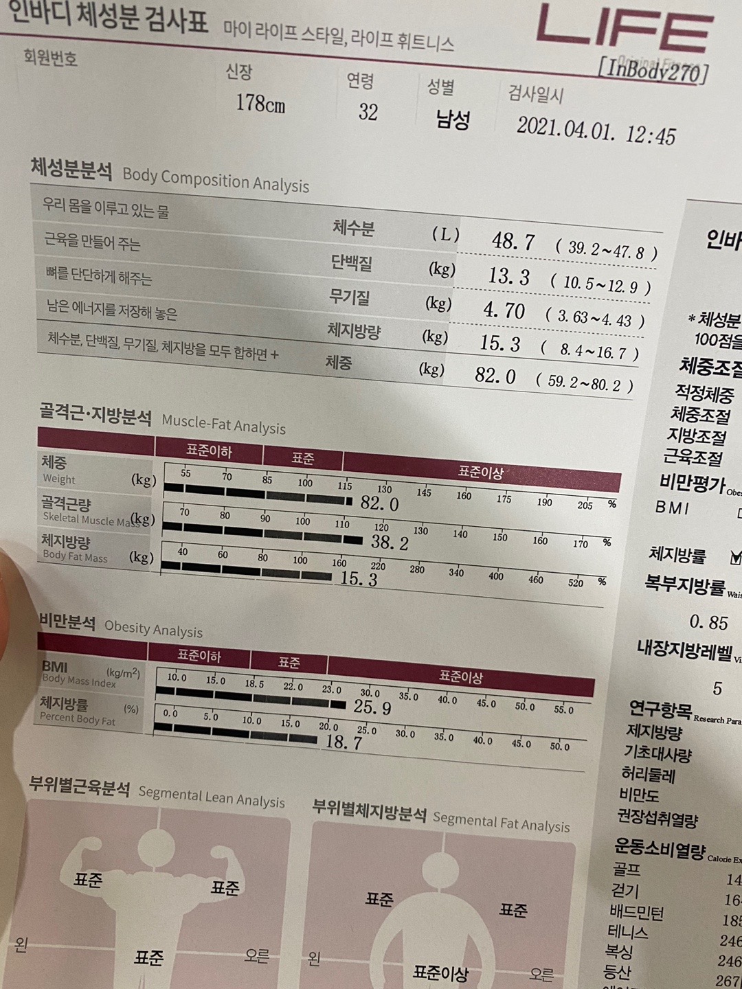 그래도 운동은 꾸준히 해왔었기 때문에 근육량이 적은편은 아니였다.