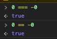 자바스크립트에서는 다음과 같이 0과 -0이 같다고 생각한다.